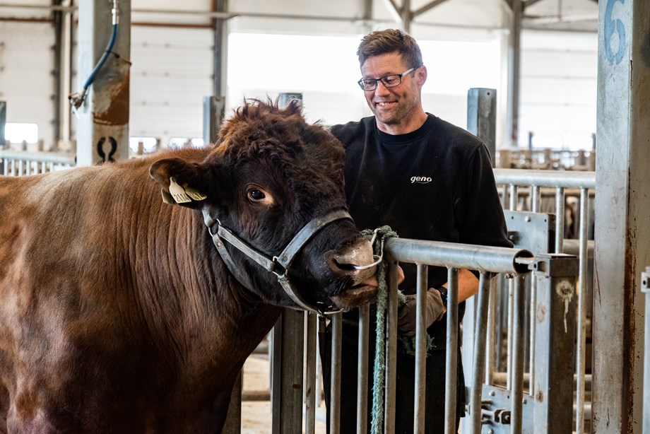 Our bulls are between 10–12 months old when they are selected for semen production. At this stage, they are fitted with a nose ring for safety reasons. The procedure is always carried out by certified professionals, with great emphasis on animal welfare: the bulls receive sedation and pain relief, and the ring is placed only in the soft tissue. The ring does not affect the bull’s ability to eat or drink, nor does it cause discomfort in daily life. When bulls are moved, they are led with a halter and rope.